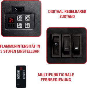 Termostaatkütteseade avatud akende tuvastamisega – Elektrikerisel on avatud akende tuvastus, mis tähendab, et dekoratiivkamin lülitub tuuletõmbuse korral automaatselt välja, nii et te ei küta oma maja asjatult
