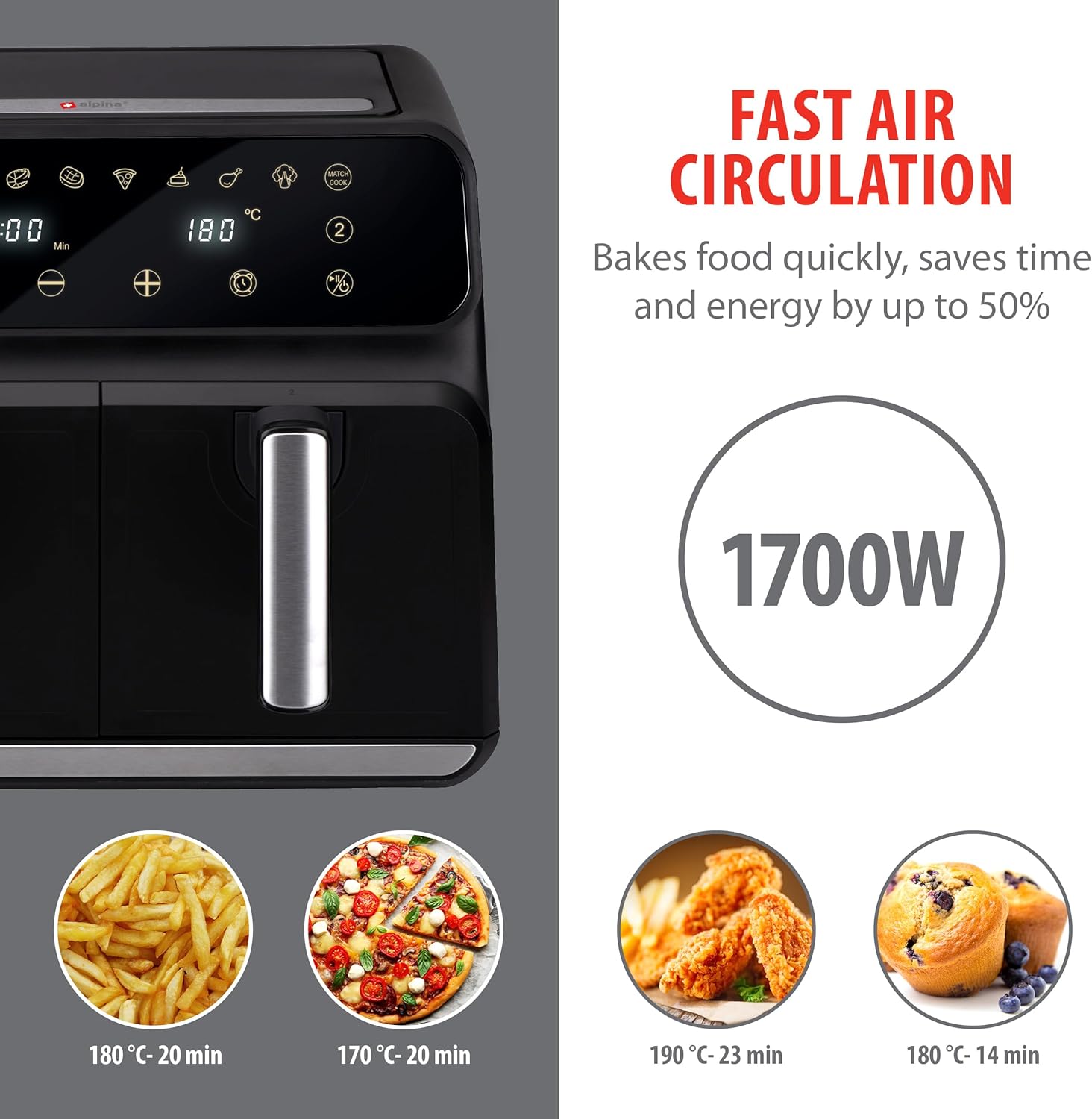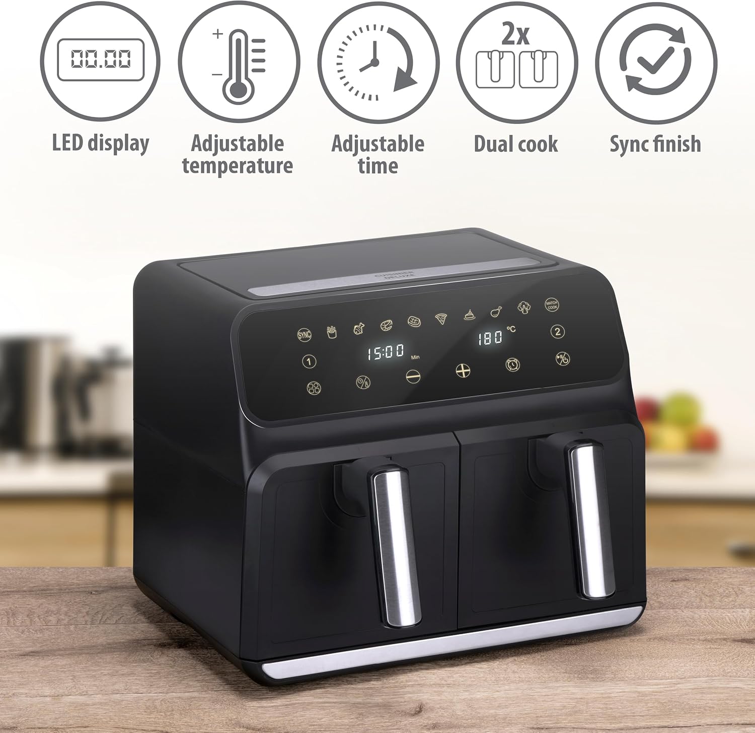 8-liitrine õlivaba fritüür (kaks nelja liitrist korvi) – See 8-liitrine õlivaba topeltfritüür on ideaalne lahendus neile, kes otsivad avarat ja mitmekülgset fritüüri.