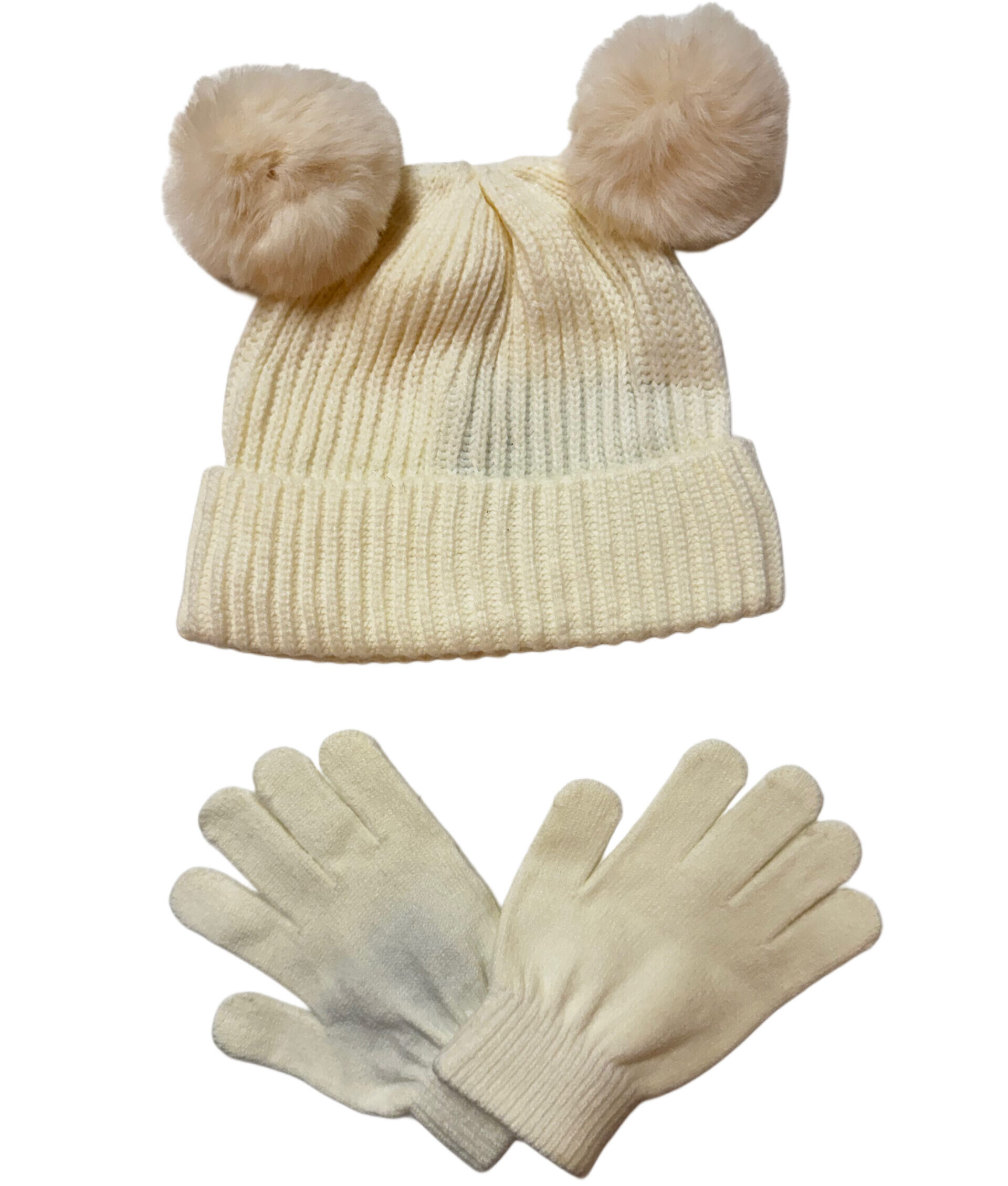 AVON valge komplekt lastele- kindad ja müts 4-6a