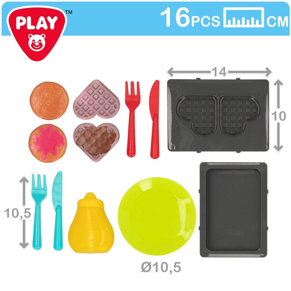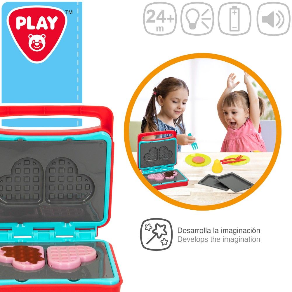 Valmista hommikusöök PLAY elektrilise võileivamasinaga. Sisaldab 2 südamekujulist vahvlit, 2 pannkooki, 2 taldrikut, 2 söögiriistade komplekti, 2 alust ja purki siirupit, kui maitsev! See tekitab ka helisid ja tulesid. Töötab kahe AAA patareiga (kaasas). See arendab kujutlusvõimet ja julgustab õppima majapidamistööde kohta. Lastele alates 2. eluaastast.