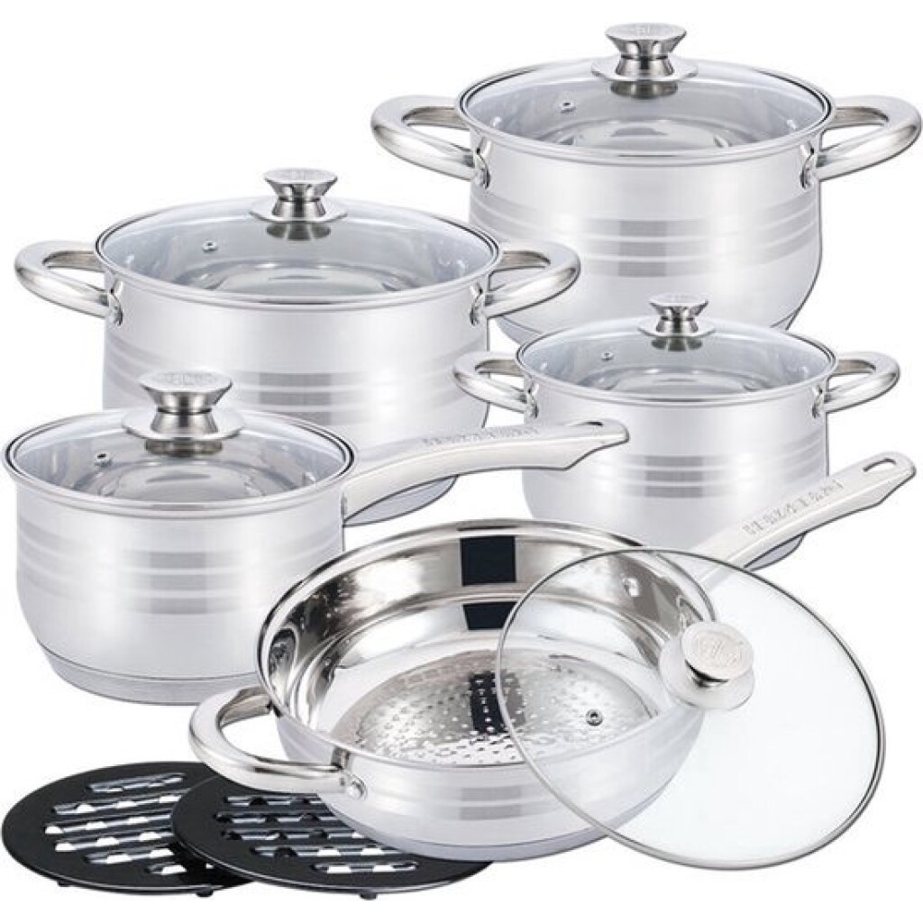 Cheffinger 12 osaline pottide komplekt klaaskaantega