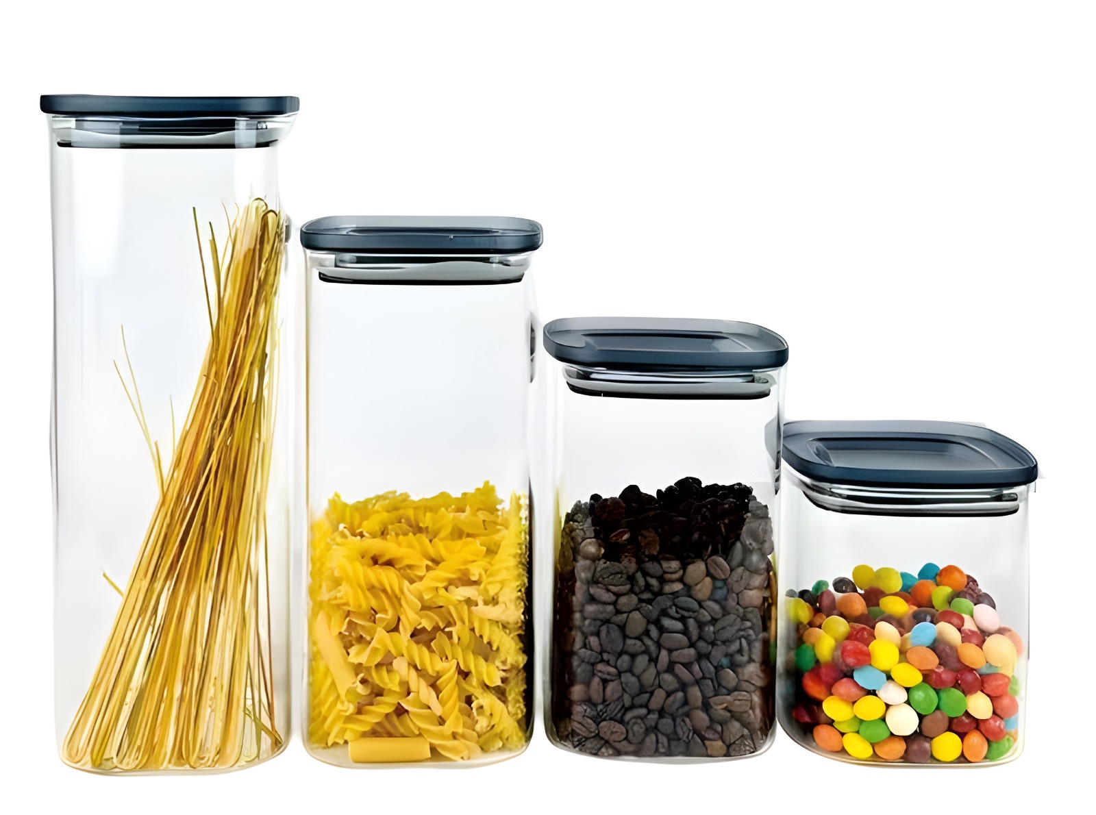 Cheffinger klaasist hoiupurgid 4tk plastkaanega 900ml 1200ml 1600ml 2100ml