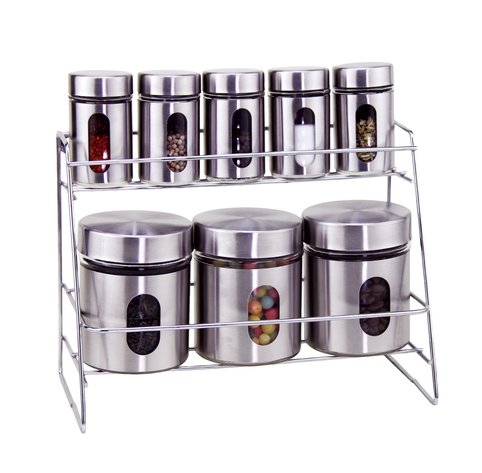 5 klaasist vürtsipurki ja 3 klaasist hoiupurki Metallist kaanega ja statiiviga Vürtsi purk 5 X 90ml Hoiupurk 3 X 320ml