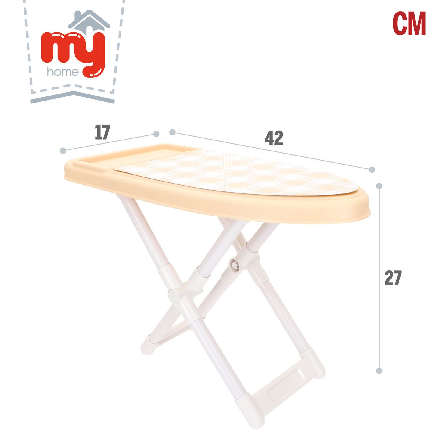 Triikimislaud on 27 cm kõrge ja 42 cm pikk, ideaalne lastele mugavaks kasutamiseks