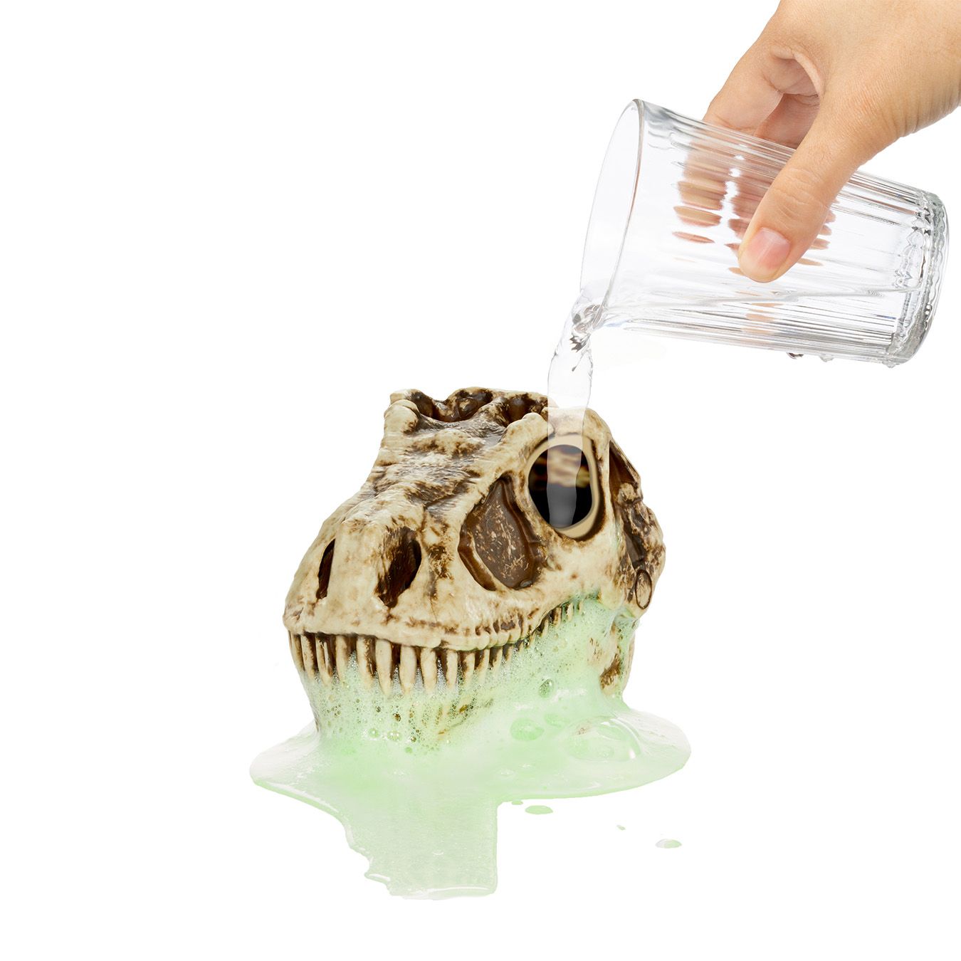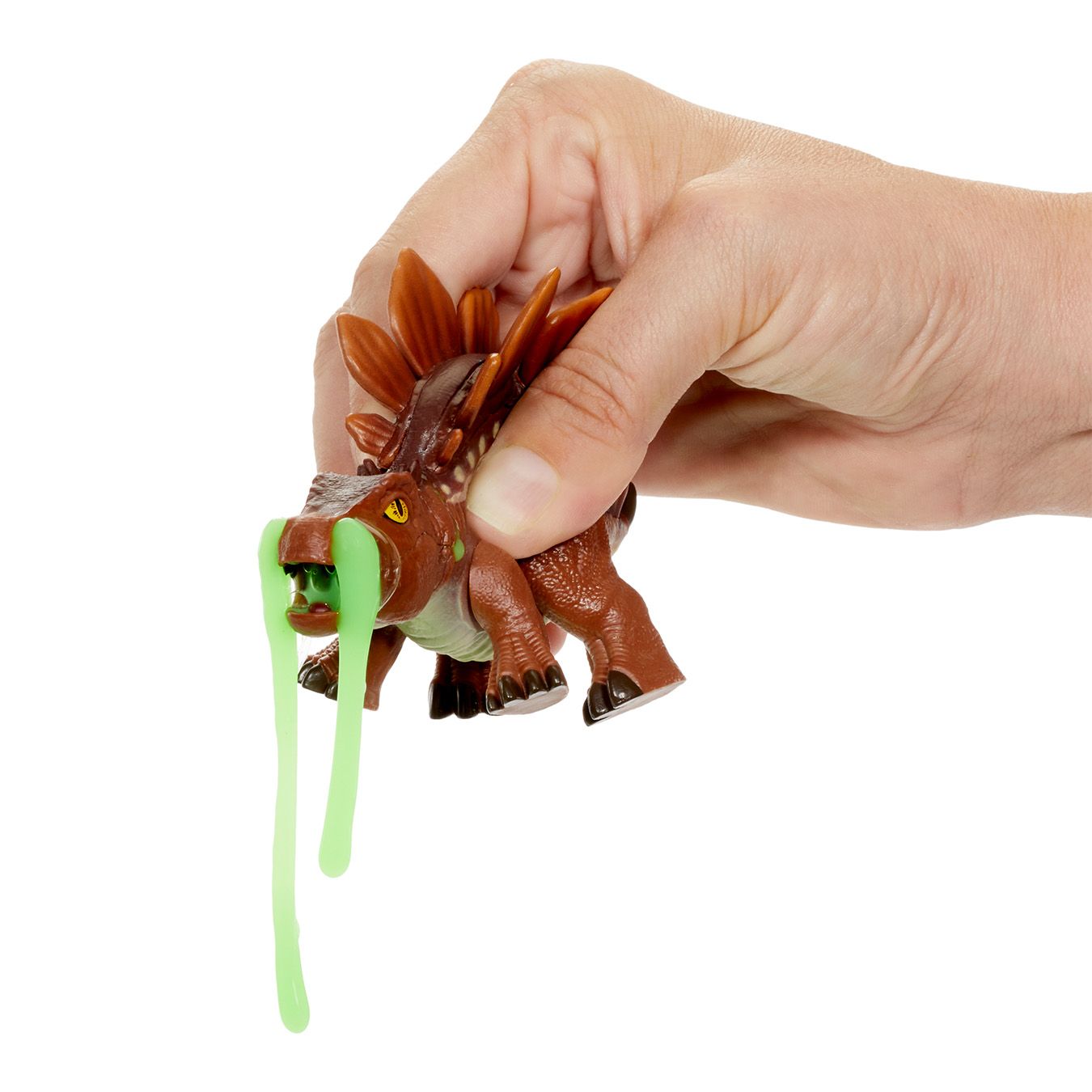 • VAHT JA LIMA KOOS: Lisa vett ja vaata, kuidas dino hakkab suus vahutama. Toida oma dinosaurust limaga ja pigista siis keha, et näha, kust roheline lima purskab