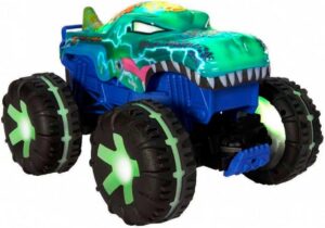 Hot Wheelsi Mega-Wrex Monster Trucks ärkab ellu suure kaugjuhtimispuldiga sõidukina, millel on interaktiivsed heli- ja valgusefektid.