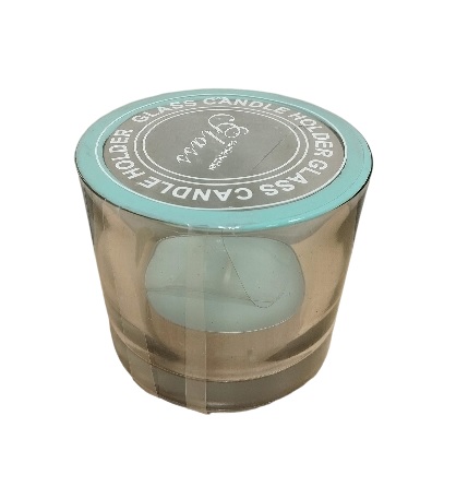 Klaasist küünlahoidja helesinise küünlaga Kõrgus 8cm Läbimõõt 9cm