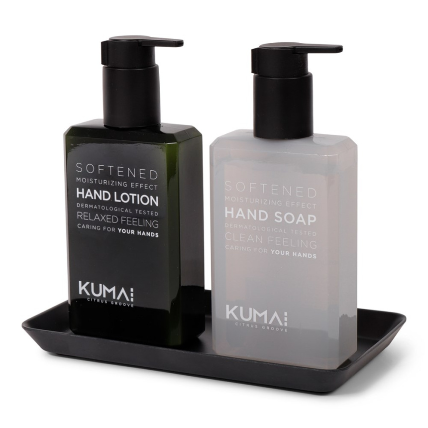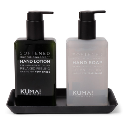 Luksuslik ja vegan kinkekomplekt, mis koosneb vedelseebist, kätekreemist ja kandikust pudelite serveerimiseks. Seep ja kreem on mõlemad valmistatud õrnadest koostisosadest, mis sobivad igale nahatüübile. Komplekt tagab käte ülimat niiskust ja hoolt. Toodetel on värskendav muskuse ja tsitruse lõhn.