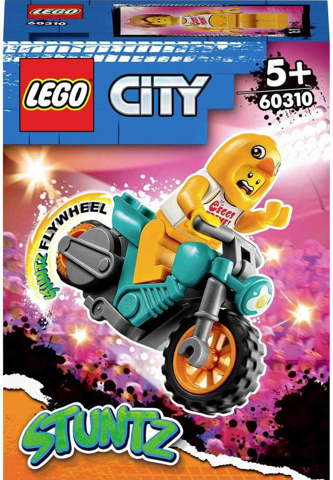 See tegevusterohke hoorattaga LEGO City Chicken Stunt Bike (60310) mänguasjakomplekt 5+ aastastele lastele tuleb kaasa suurepärase isesõitva mänguasjamootorrattaga, mis võimaldab sooritada lahedaid wheelie’sid ja kõrgel lendavaid trikke. Lisa lihtsalt LEGO City Adventures telesarja tegelane – ja LEGO kaskadöör Clemmons, kes on riietatud oma kanakostüümi, et saada naljakaid trikkide seiklusi.