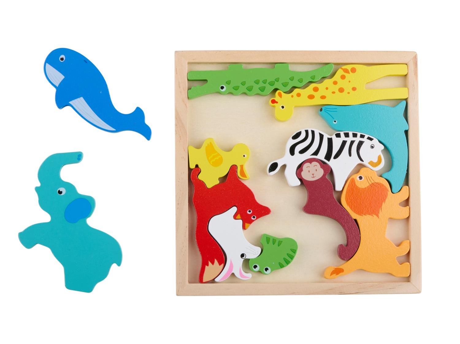Marionette puidust loomapusle 12 osa sisaldab erksaid mitmevärvilisi loomi, luues lõbusa ja kaasahaarava mõistatuskogemuse igas vanuses