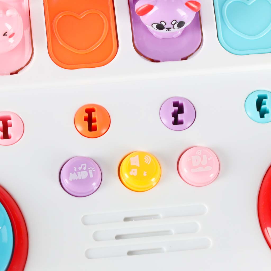 See interaktiivne mänguasi põimib hariduslikke elemente mängu ligipääsetaval viisil. Rõõmus muusika ja värvilised loomad bussis tõmbavad kindlasti lapse tähelepanu, pakkudes talle meelelahutust pikki tunde. Bussimänguasi on kerge ja mugav – mugav käepide võimaldab seda alati kaasas hoida. Seade töötab kolme AA patareiga – nii et saad nuppude abil vabalt laule vahetada. Vasakul olev MIDI nupp mängib 10 meloodiat, paremal olev DJ nupp 3 lugu. Keskel on nupp, millega saab helitugevust reguleerida. Suured sinised nööbid reljeefsete käppadega matkivad trummide heli. Laps saab neid lüüa, harjutades rütmitunnet ja kuulmisoskusi.